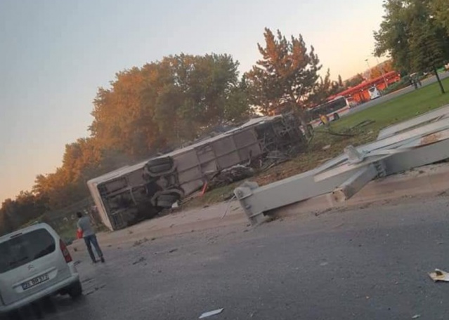 İddialara göre 26 S 0283 plakalı Mehmet İ. idaresindeki servis otobüsü ile seyir halindeyken, bir anlık dalgınlığı sonucu bariyerlere çarpıp otogar önünde bulunan yeşil alana devrildi.