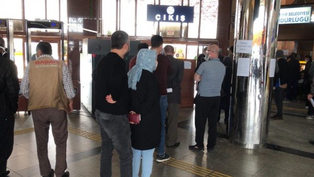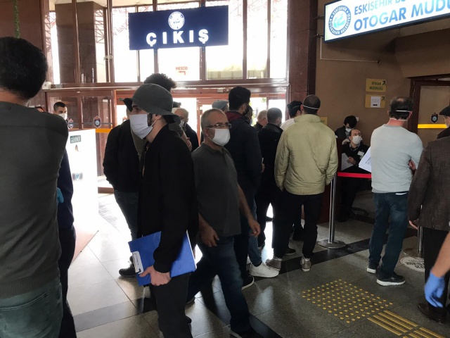 Eskişehir Şehirlerarası Otobüs Terminalinde oluşturulan Seyahat İzin Kurulu’na başvuran vatandaşların bazıları sosyal mesafe kuralına uymazken, kalabalık içinde maske bile takmayanların da yer aldığı gözlendi.
