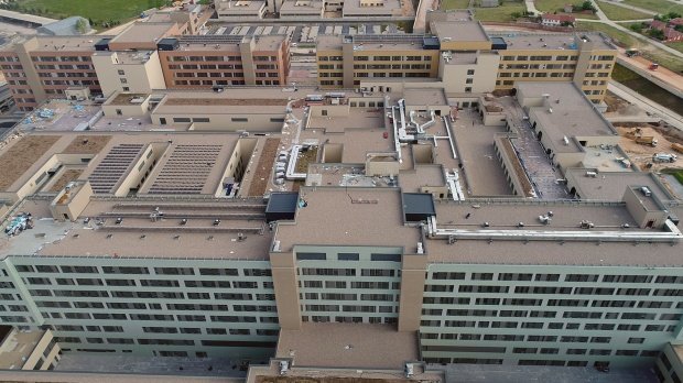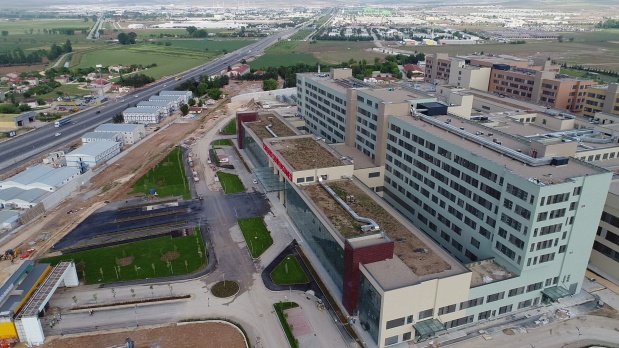 İçerisinde kalp damar, onkoloji, yüksek güvenlikli adli psikiyatri hastanesinin de bulunacağı Şehir Hastanesi, çevre illere de büyük bir hizmet verecek. Önümüzdeki ay içerisinde tamamlanması beklenen Eskişehir Şehir Hastanesi'nin son hali is havadan görüntülendi.