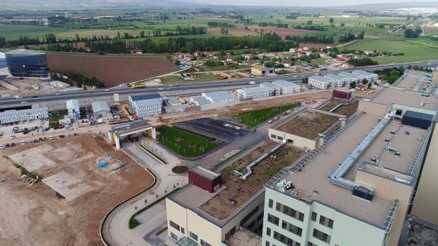Yapımı devam eden Eskişehir Şehir Hastanesi'nin inşaatında sona yaklaşılırken dev kampüs havadan görüntülendi.
