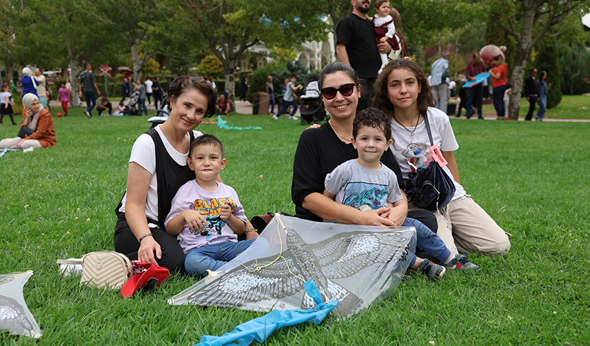 Birbirinden renkli uçurtmaların gökyüzünü süslendiği şenlikte çocuklar ve aileleri gönüllerince eğlendi.