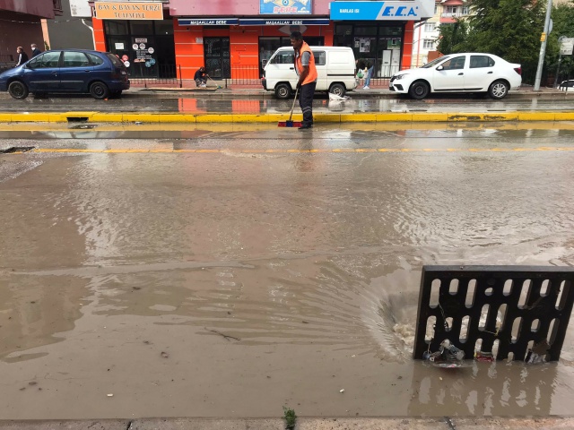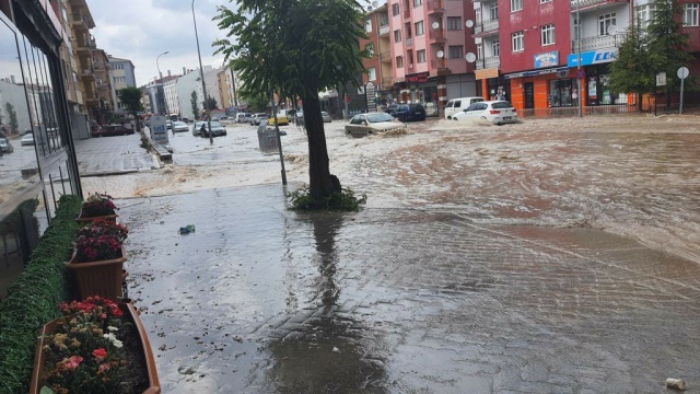 Eskişehir’de yaklaşık 10 dakika süren sağanak yağış sonrasında yollar suyla kaplanırken, bazı tramvay seferleri yapılamadı, hayat geçici olarak adeta durma noktasına geldi.