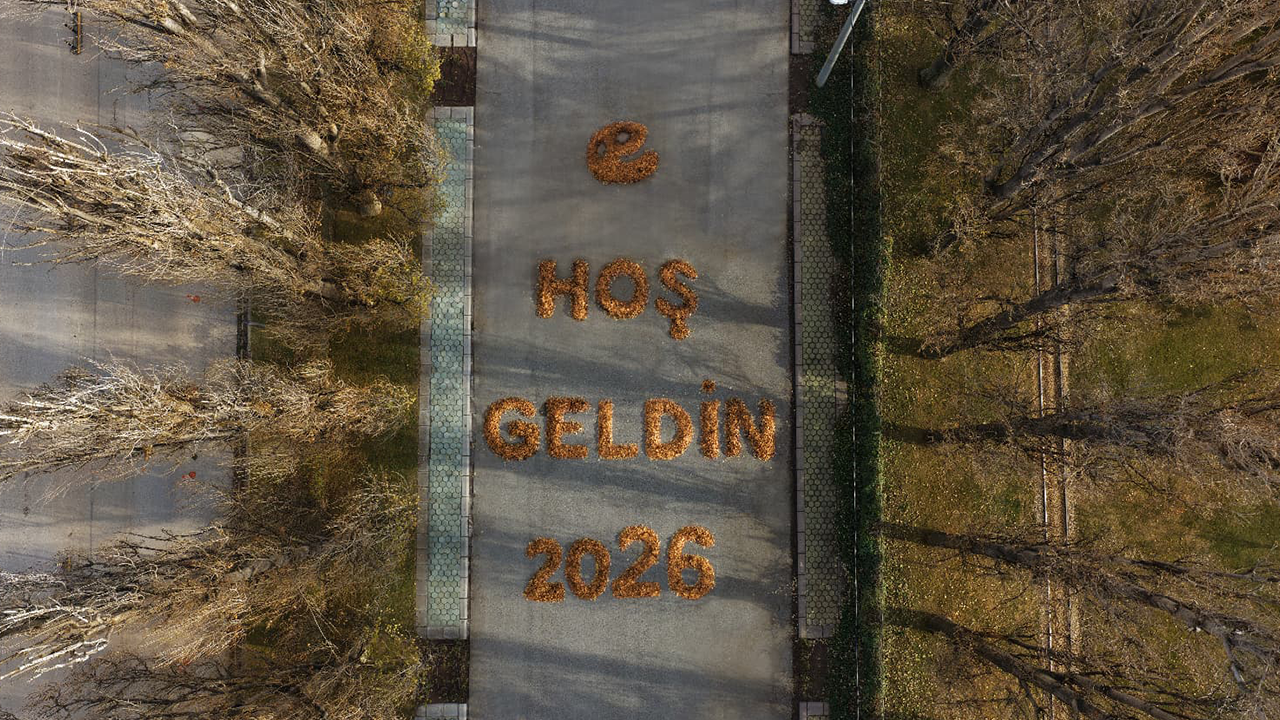Eskişehir Büyükşehir Belediyesi Park ve Bahçeler Dairesi Başkanlığı ekipleri, kavak ağaçlarından dökülen binlerce sarı yaprağı toplayarak Sazova Bilim Kültür ve Sanat Parkı’nda binlerce sarı yaprakla yeni yıla özel renkli bir çalışma yaptı. Yeşilliklerinin ortasına dev bir “Hoş Geldin 2026” yazısı oluşturdu. Çalışma, parkı ziyaret eden vatandaşların büyük ilgisini çekti.