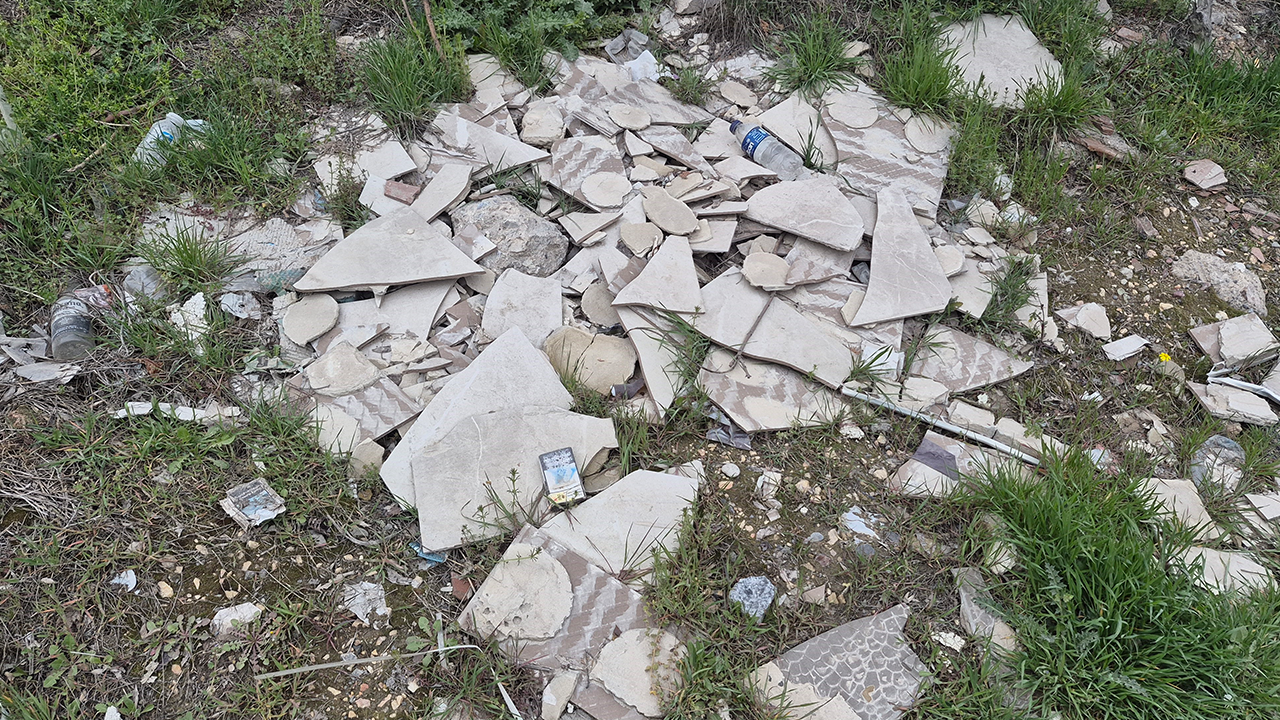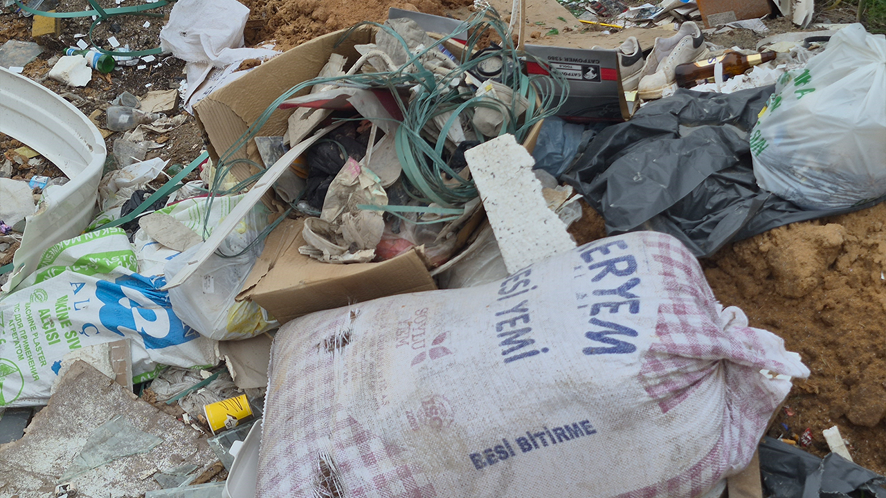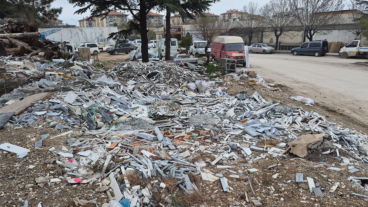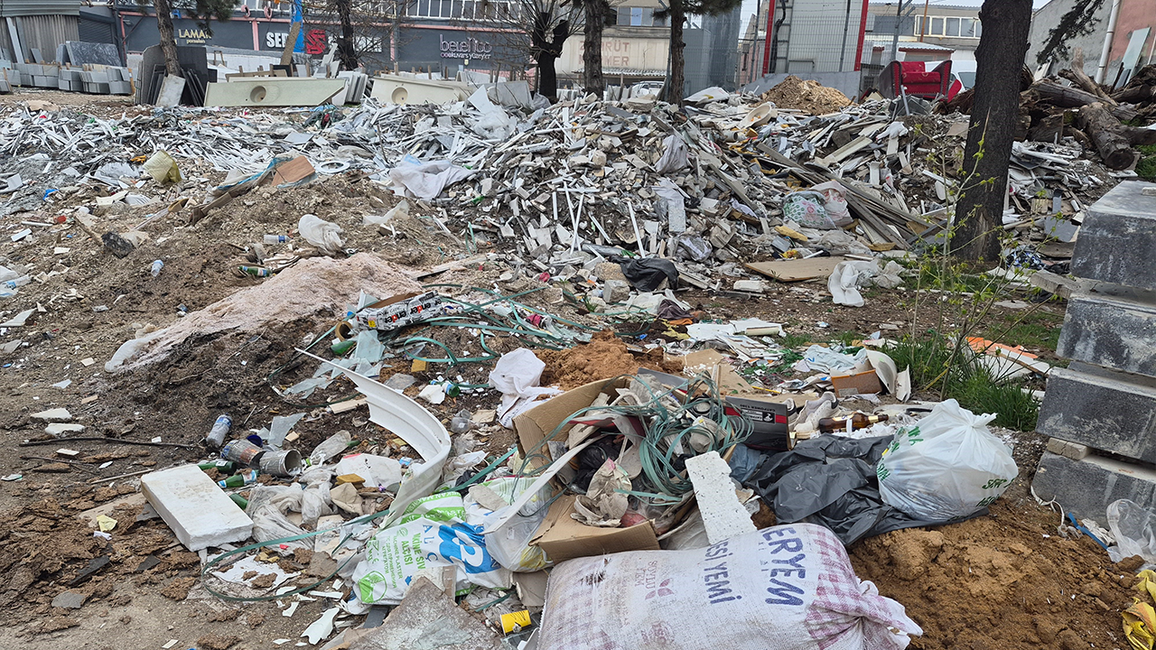 Sanayi sitesinde özellikle mermer atıkları, eski lavabolar, inşaat malzemeleri ve ağaç dallarının oluşturduğu yığınlar dikkat çekiyor. Boş arazilerin adeta çöp depolama alanına dönüştüğü belirtiliyor.