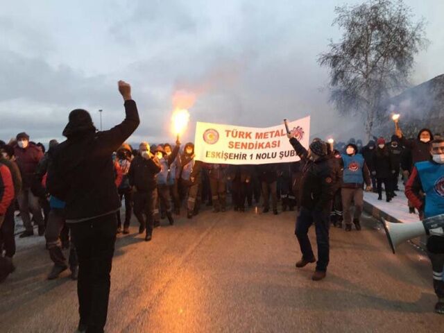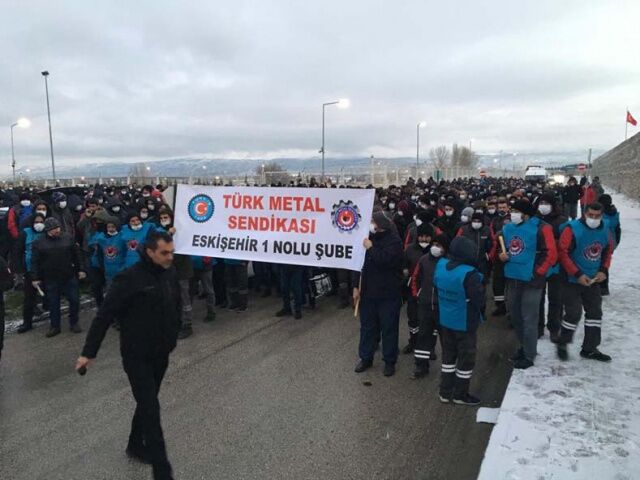 Eskişehir’de Türk Metal Sendikasına üye Arçelik Fabrikası işçileri, Türkiye Metal Sanayicileri Sendikası’nın (MESS) yüzde 12 teklifine karşı yürüyüş düzenledi.