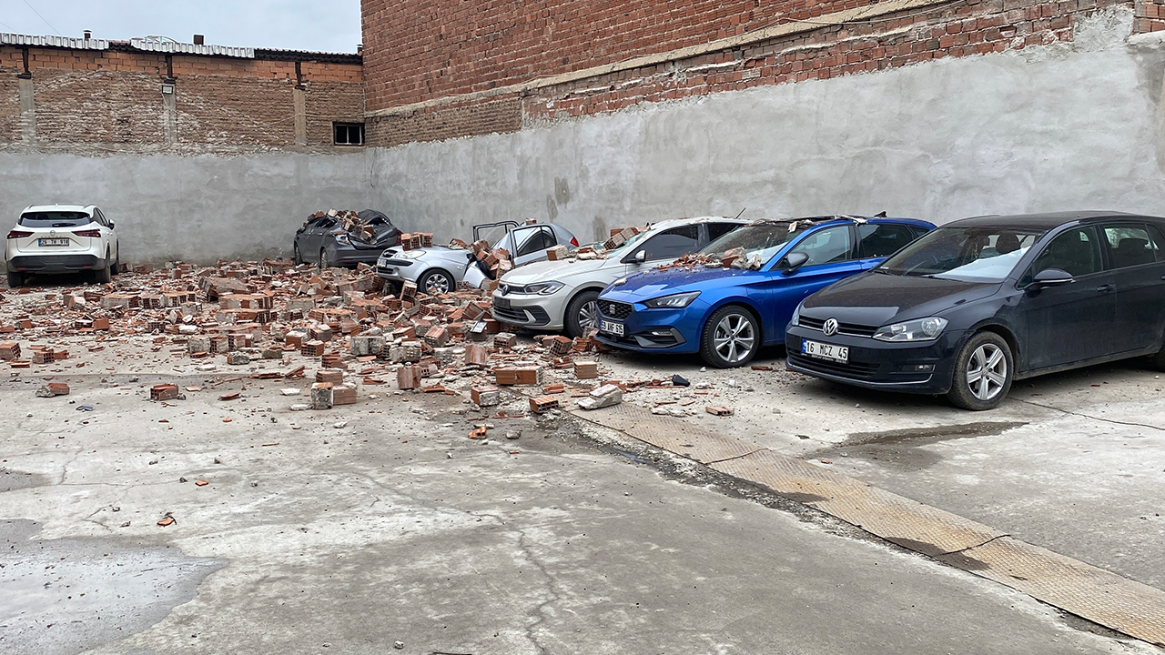 Duvarların yıkılması sonucu park halindeki araçların üzerine molozlar düştü.