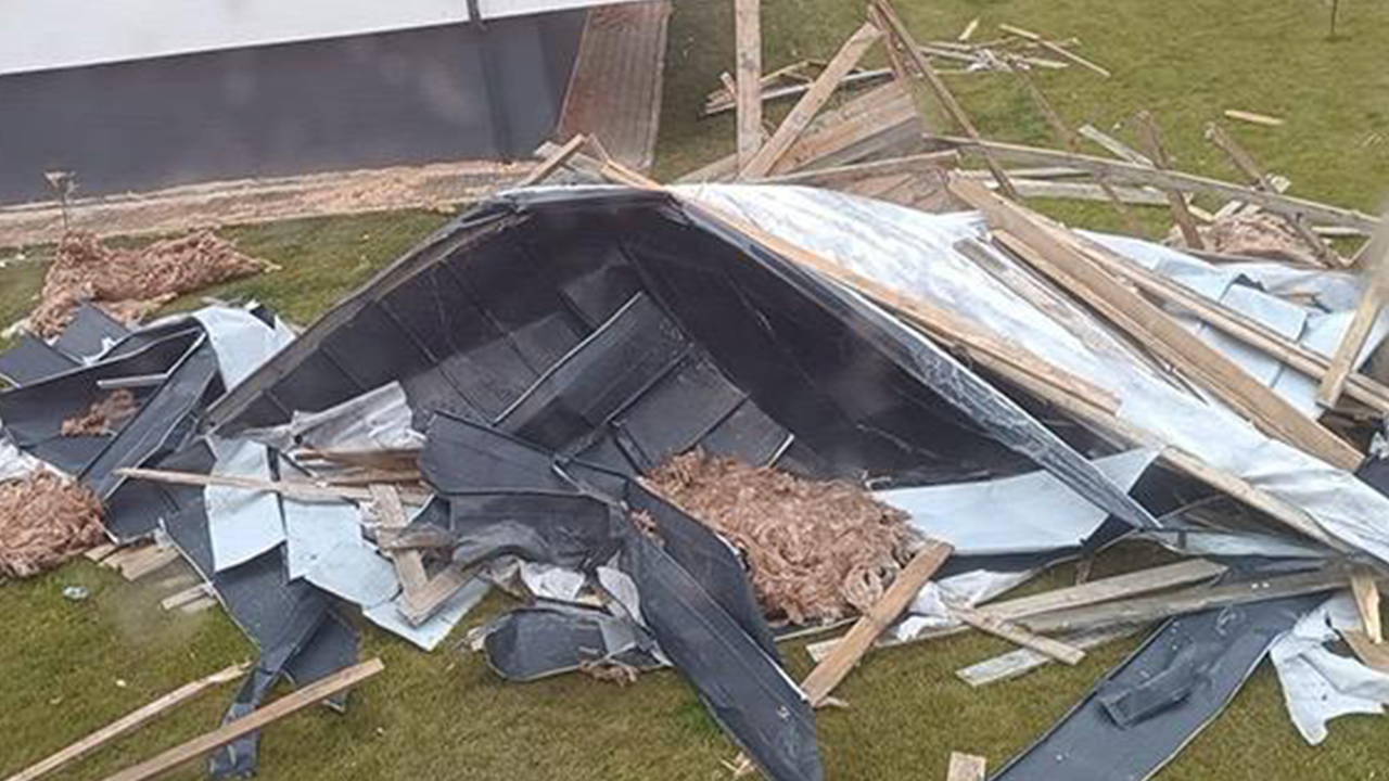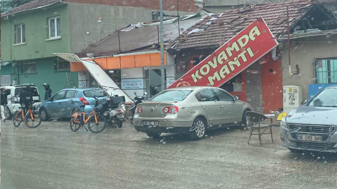 Şiddetli rüzgâr nedeniyle birçok binanın çatısı yerinden koparken, savrulan parçalar çevreye zarar verdi.