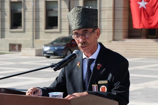 Günün anlam ve önemini belirten bir konuşma yapan Türkiye Muharip Gaziler Derneği Şube Başkanı Ertuğrul Özkütük, “Gaziler Günü nedeniyle Büyük Önder Gazi Mustafa Kemal Atatürk’ü ve silah arkadaşlarını, aramızdan ayrılan gazilerimizi ve vatan uğruna toprağa düşen şehitlerimizi rahmetle anıyor; hayatta olan gazilerimize de esenlikler diliyorum” dedi.