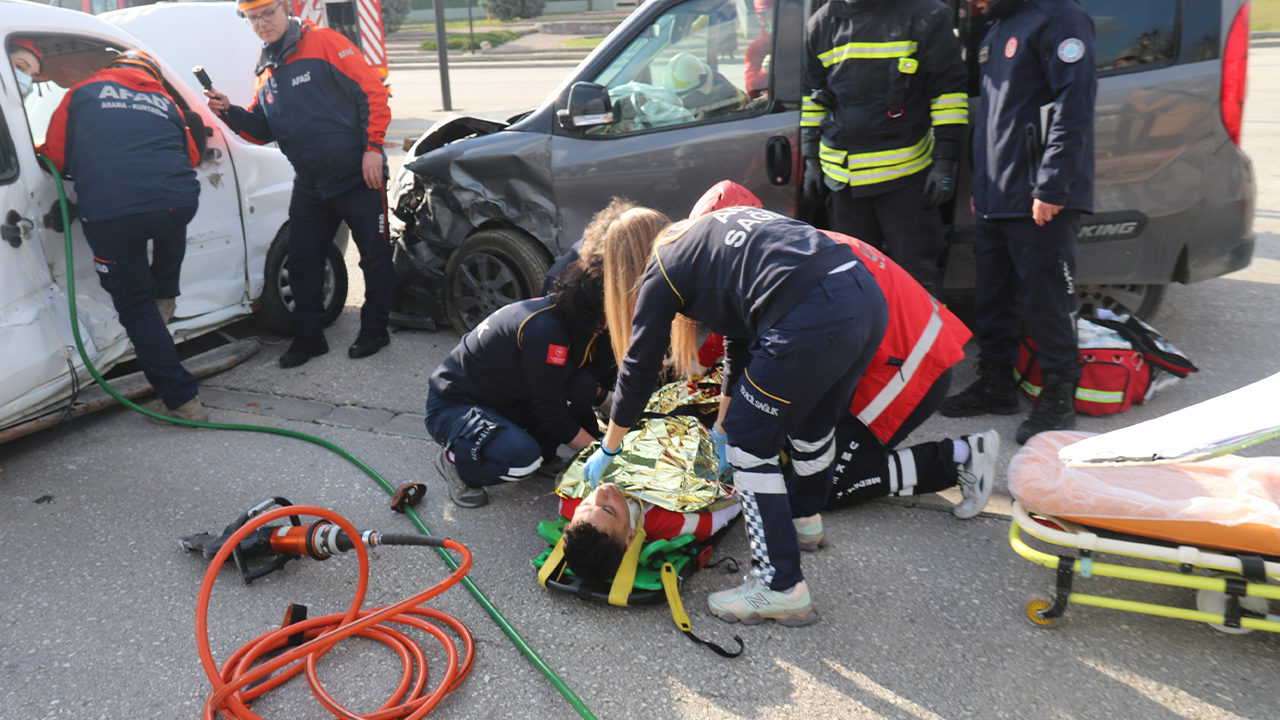 Eskişehir’in Odunpazarı ilçesi Ihlamurkent Mahallesi’ndeki açık pazar alanında İl Ambulans Servisi, AFAD, İl Emniyet Müdürlüğü, UMKE ve itfaiye ekiplerinin katılımıyla geniş kapsamlı bir kaza tatbikatı gerçekleştirildi. Senaryo gereği kafa kafaya çarpışan iki araçtaki yaralılara ekipler tarafından müdahale edildi.