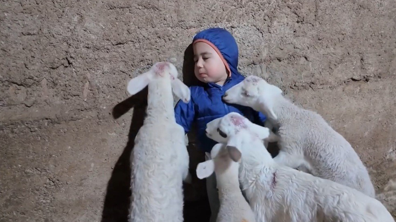 Görüntülerde Topkaya’nın oğluna “Kuzular ne yapıyor sana?” sorusunu yöneltmesi üzerine, minik Yusuf Alp’in “Kuzular beni yiyorlar” cevabı hem ailesini hem izleyenleri gülümsetti.