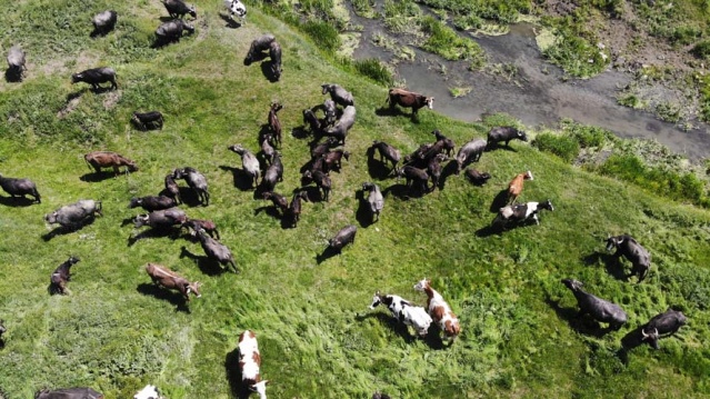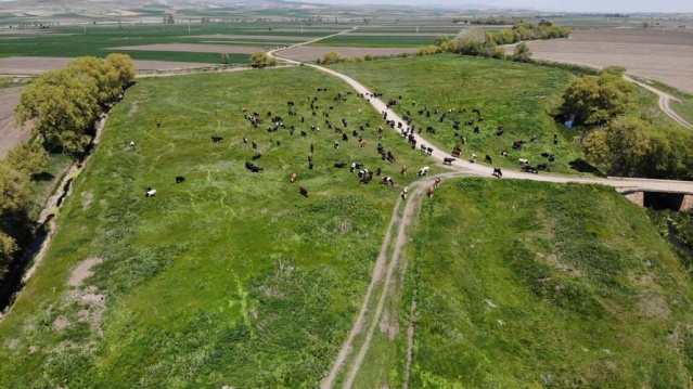 İlçede bulunan yaklaşık 150 manda ve beraberindeki inekler, kırsal alanlarda güzel görüntüler oluşturuyor. Afrika’da çekilen belgeselleri aratmayan manzaralar ortaya çıkaran hayvan sürüsü, çevreden geçenleri de adeta mest ediyor. Kartpostallık karelerin oluştuğu anlar ise dron ile kaydedildi.