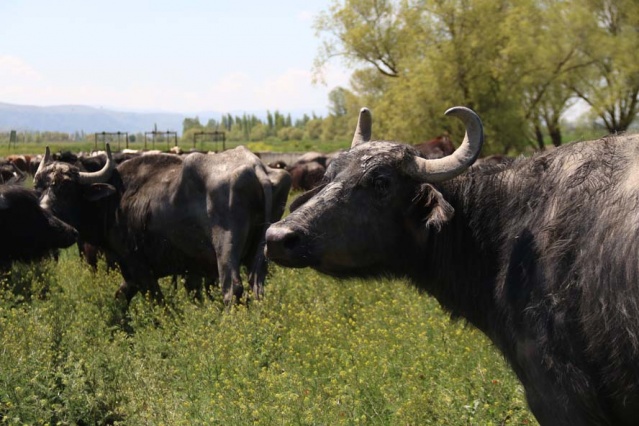 Yaz döneminde sabah 8 buçukta çıkıyor, akşam 6’da geliyor. Genellikle meradan faydalanıyoruz. 150 tane mandamız var, inekler de var ama çoğu zaman vatandaşlar inekleri salmıyor. Manda eti, sığır etine oranla yüzde 40 daha az kolesterol içerir. Manda yoğurdunda B12 olduğu için kanser ve astım gibi hastalıklara iyi geldiği bilinmektedir.