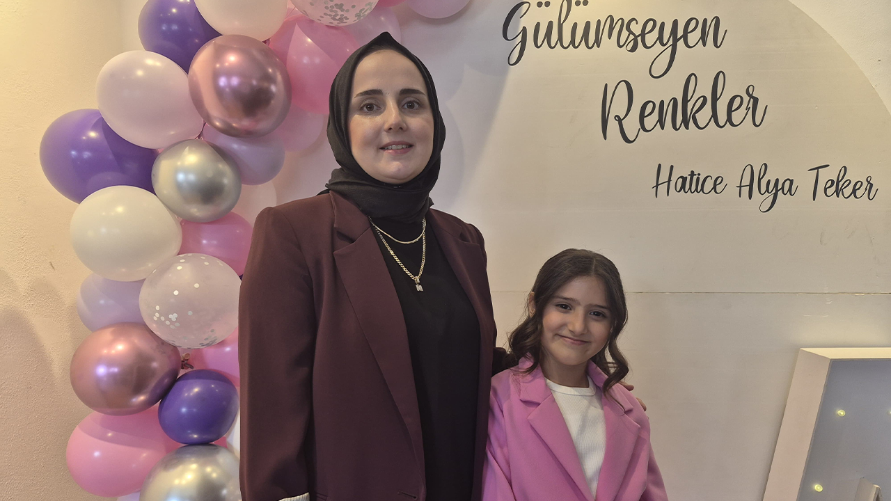 Kızının yeteneğini erken yaşta fark ettiklerini belirten anne Miray Teker, "Boyalı Parmaklar Resim Topluluğu'nun bir üyesiyiz; iki kızımla, kardeşi Hüma da aynı şekilde orada. Sema hocam sağ olsun onların hayal dünyasına eşlik ediyor. Çocukların hayal dünyası çok renkli olduğu için eserlerinde genelde canlı renkler kullanıyorlar. Şu an 31 eserle ilk kişisel sergimizi açtık. Neredeyse dört-beş yıllık bir emeğimiz var. Çocukları telefon ve sosyal medyadan uzaklaştırmak ve öğretmenlerinin de yeteneğini keşfetmesiyle biz bu yola çıktık’’ şeklinde konuştu.