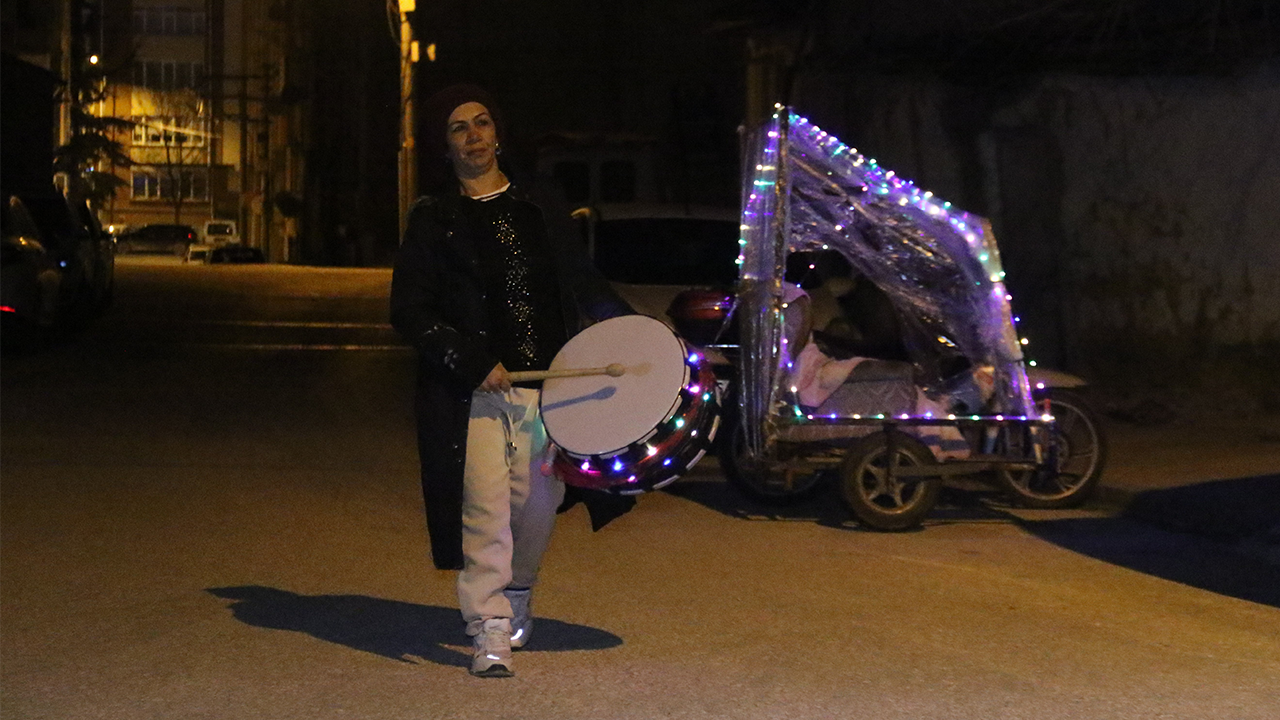 Konuya ilişkin detayları anlatan Kapkın: "Küçük bir mahalle, insanların yüreği büyük. Sonra vesileyle muhtarımla tanıştırdılar. Muhtarımın yanına geldim, çok güzel bir gönlü var Allah razı olsun. O da çok güzel bir şekilde destekledi. Daha güzel görünsün, insanlar hem tedirgin olmasın, daha hoş olsun diye motorumu ve davulumu ışıklarla süsledim. Sokağın başında motosikletimle duruyorum, sonra sokak boyunca yürüyerek davulumu çalıyorum. Orayı bitirdikten sonra tekrar motoruma binip diğer sokaklara geçiyorum. Kadın olduğum için biraz da tedirgin oluyorum, korkuyorum ama insanlarımız Allah razı olsun çıkıp balkonda el sallamaları bana özgüven veriyor. İlk çaldığımda biraz çok korktum ama Allah razı olsun muhtarımız da daha önce beni sosyal medyada ‘davulcumuz' diye paylaştığı için rahatım. Balkonda bana bakmaları, el sallamaları oldu, selam veren oldu. İlk günü çok soğuktu, kar yağıyordu, biraz üşüdüm gerçekten. Saat 3'te çalmaya başlıyorum, saat 03.50'ye kadar yani bitiriyorum’’ ifadelerini kullandı.