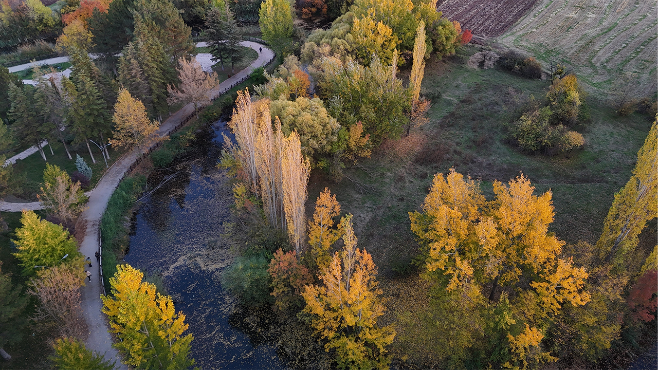 Sararan ve dökülen yapraklar arasında vatandaşlar yürüyüş yaparken fotoğraf çekmeyi ihmal etmedi. Şehirle özdeşleşen Porsuk Çayı’nın sonbahar görüntüleri drone ile havadan kaydedildi. Ayrıca Orhangazi Mahallesi’ndeki Botanik Park’ta da sonbahar renkleri ziyaretçileri mest etti.