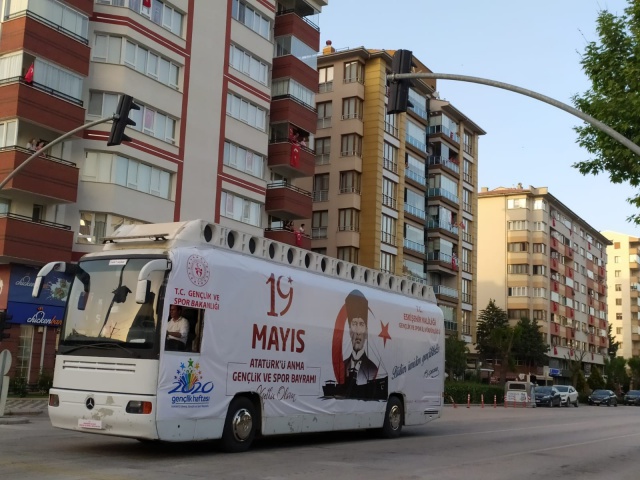Eskişehir’de Gazi Mustafa Kemal Atatürk'ün 19 Mayıs 1919'da kurtuluş mücadelesi için Samsun'a çıkmasının 101'inci yıl dönümünde vatandaşlar balkon ve pencerelerine çıkarak, saat 19.19'da İstiklal Marşı'nı okudu.