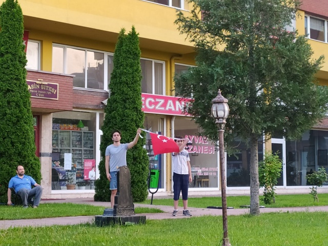 Vatandaşlar, polis ve bekçiler hep bir ağızdan İstiklal Marşı'nı okudu. Vatandaşlar, İstiklal Marşı sonrası hep birlikte alkış tutarak, çalınan şarkılar eşliğinde 19 Mayıs Gençlik ve Spor Bayramı'nı kutladı.
