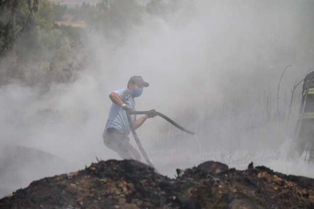 Rüzgarın etkisiyle kısa sürede büyüyen alevler, araziye atılmış kullanılmayan lastiklere de sıçradı.