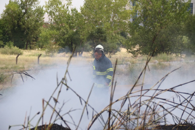 Edinilen bilgiye göre, Gündoğdu Mahallesi'ndeki sulama kanalı yanındaki arazide bulunan çalılar bilinmeyen bir sebeple tutuştu.