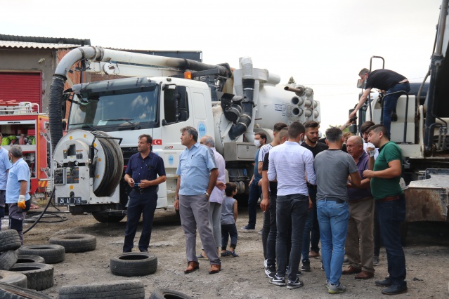 Lastiklerin tutuşmasıyla yangın büyürken, gökyüzünü yoğun duman kapladı. Çevredekilerin ihbarı üzerine olay yerine gelen itfaiye ekipleri, köpük ve suyla yangına müdahale etti.