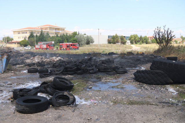 Eskişehir’de atıl vaziyetteki lastiklerin bulunduğu arazideki çalıların belirlenemeyen bir sebeple tutuşması sonucu yangın çıktı.