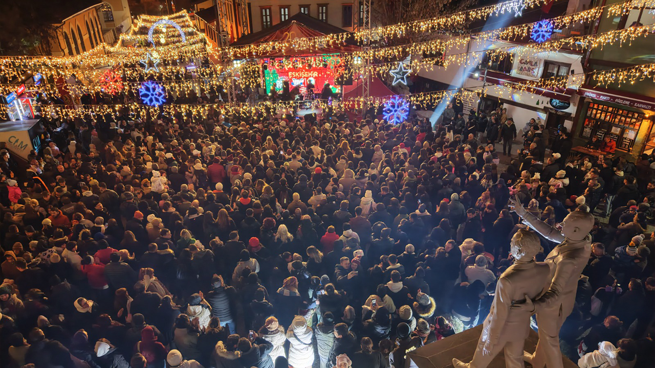 Eskişehirlilerin yanı sıra çevre illerden gelen ziyaretçiler ve Türkiye’ye gezmeye gelen yabancı turistler, pazar alanında yeni yıl coşkusunu birlikte yaşadı. Aileler, gençler ve çocuklar; tematik dekorlar ve fotoğraf alanlarında anılarını ölümsüzleştirdi.
