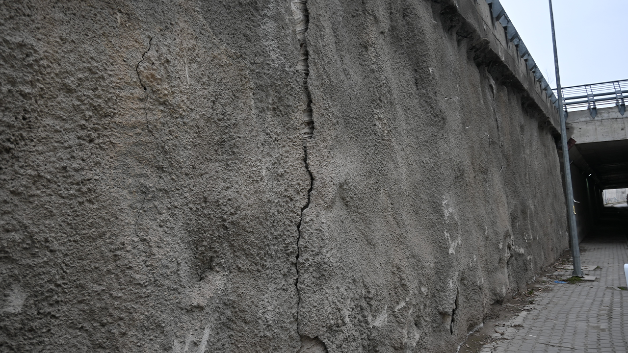 Gündoğdu Mahallesi Söğüt Ağacı Sokak üzerinde yer alan Şehit Ali Doğukan Kılınç Alt Geçidi’nde ciddi yapısal deformasyonlar meydana geldi. Alt geçidin duvarlarındaki sıvaların parça parça döküldüğü, tavan kısmından sızan sular nedeniyle beton bloklar arasında ayrılmalar oluştuğu gözlemlendi.