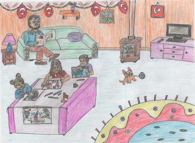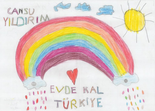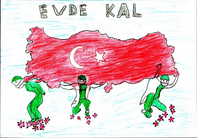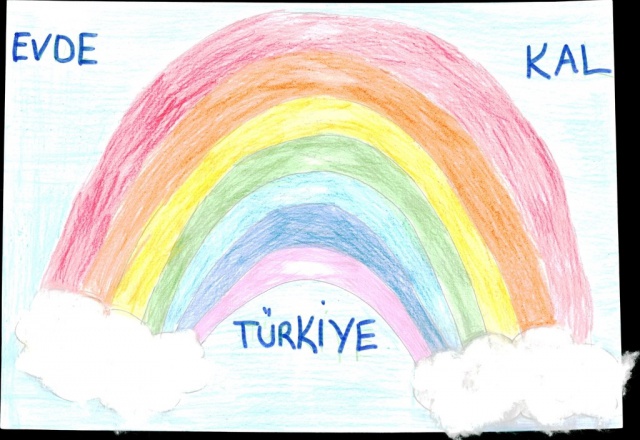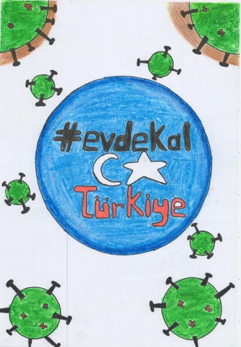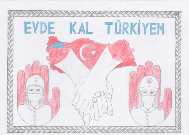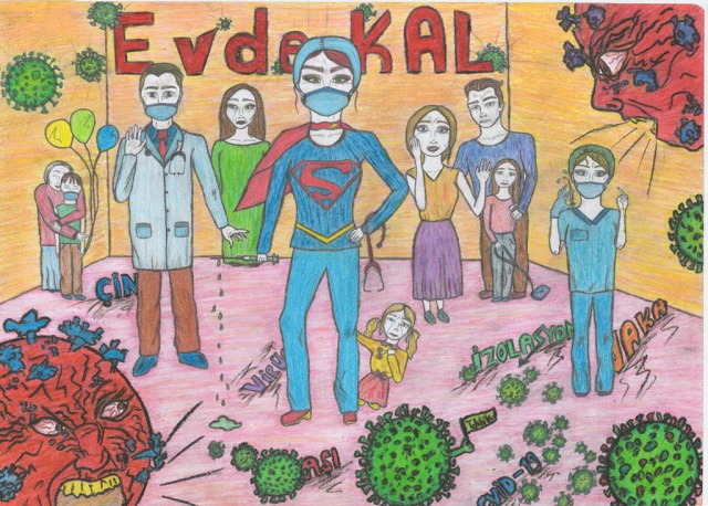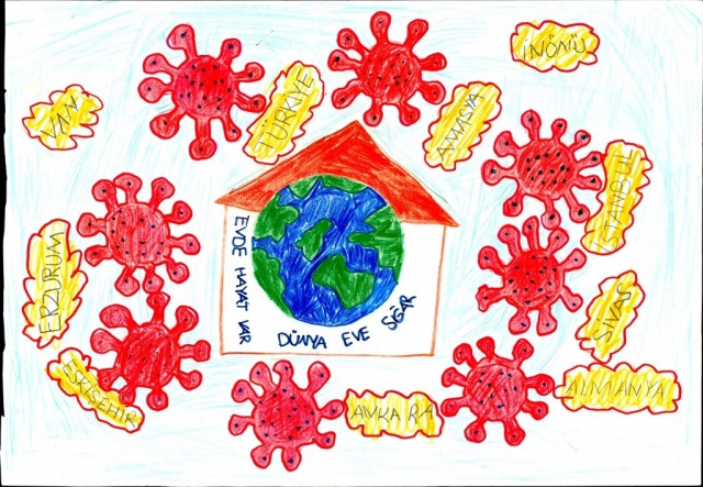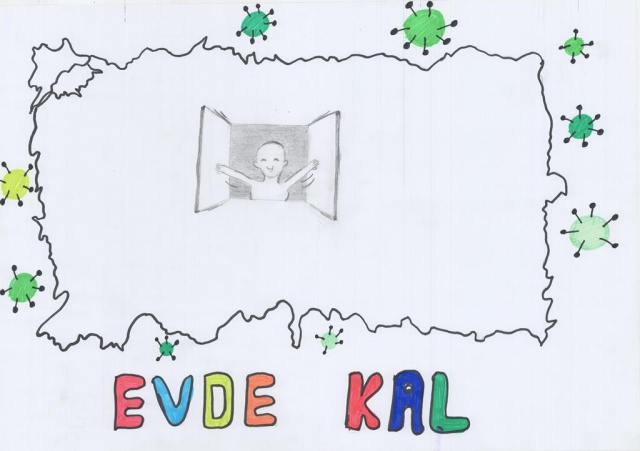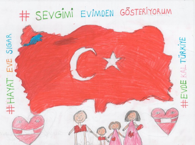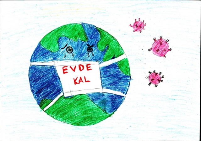 Yarışmaya gönderilen resimler duygulandırdı... Bir çocuk resminde "Sevgimi evimden gösteriyorum" diyerek herkesi evde kalmaya davet etti...