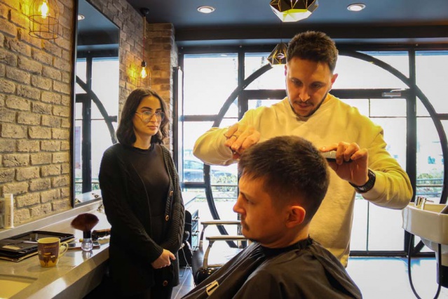 Erkek kuaförlüğünün daha yaygın bir alan olduğunu ve kadınların daha iyi hizmet verdiğini düşünerek bu mesleği seçtiğini söyleyen 18 yaşındaki Sıla Gökçe, “Kendimi daha yakın bulduğum ve kadınların daha iyi hizmet verdiğini düşündüğüm için bu mesleği tercih ettim.