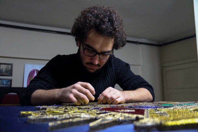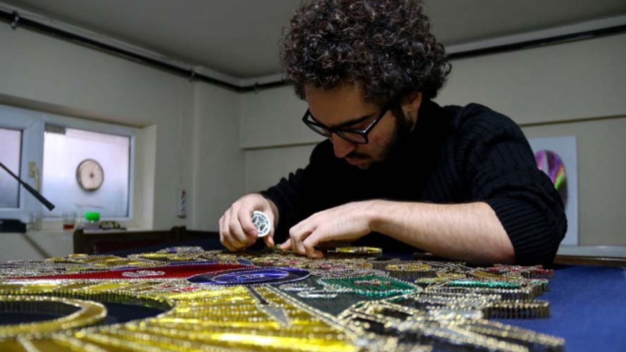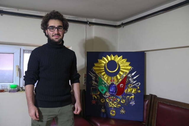 Eskişehir’de pandemi sürecinde kısıtlamaları fırsata çevirerek filografi sanatı öğrenen 18 yaşındaki Hasan Özbey Ozar, toplamda iki buçuk kilometre uzunluğunda bakır tel ile ‘Osmanlı Devlet Arması’ yaptı.