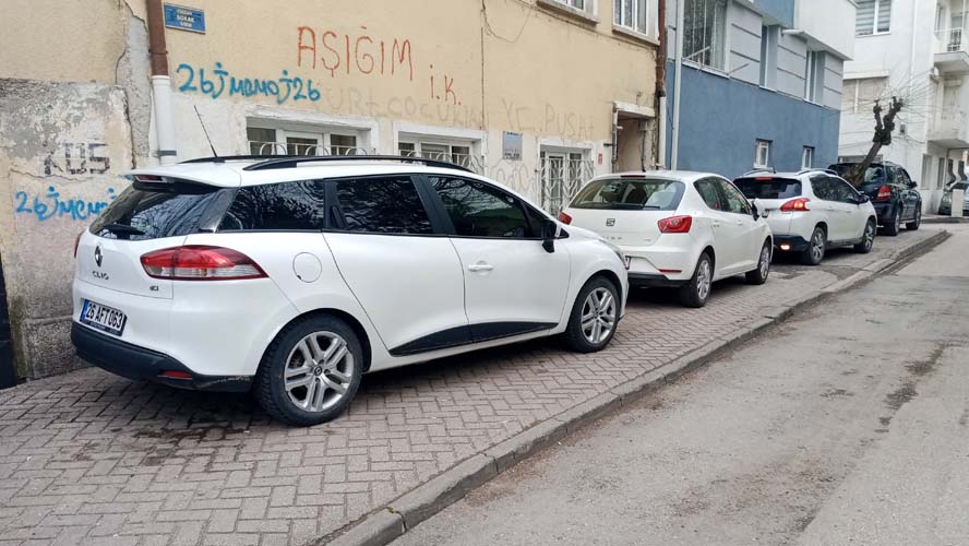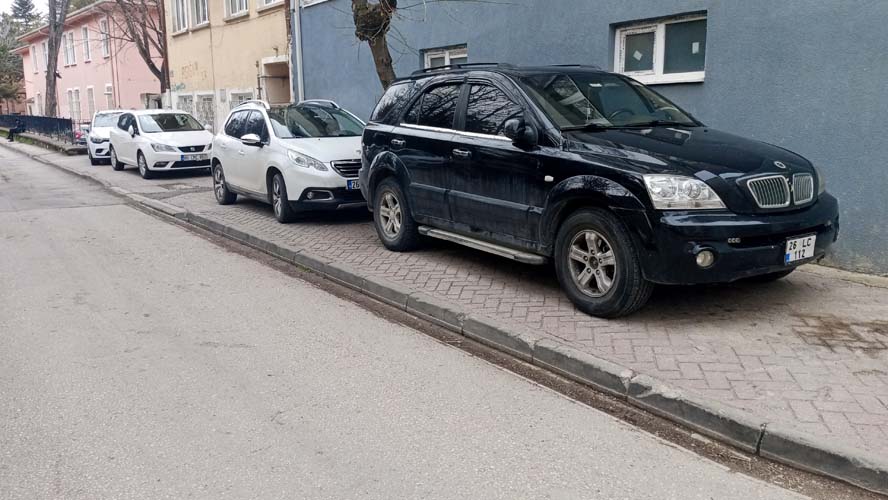 Eskişehir'de dar sokakların olduğu mahallede sürekli kaldırıma araç park eden sürücüler nedeniyle yoldan yürümek zorunda kalan vatandaşlar sorunlarına çözüm bekliyor.