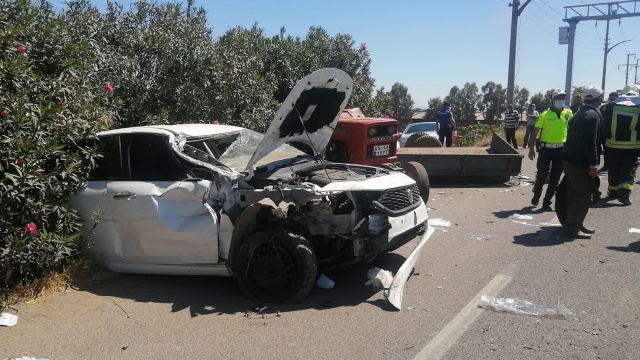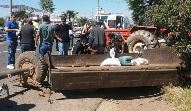 Manisa’nın Turgutlu ilçesinde E-96 Karayolu Yeni Garaj kavşağı yakınlarında meydana gelen kazada İzmir istikametinde sağ şeritte seyir halindeki Sedat Keskin (25) yönetimindeki 45 SA 1877 plakalı traktöre aynı istikamette seyir halinde olan Muhammet Ay (37) yönetimindeki 34 CDT 548 plakalı Fiat marka otomobil çarptı.