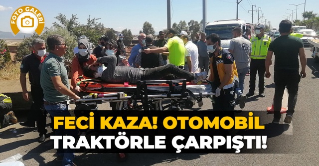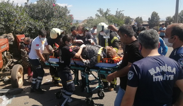 Manisa'nın Turgutlu ilçesinde otomobil ve traktörün çarpışması sonucu meydana gelen kazada biri ağır 4 kişi yaralandı.