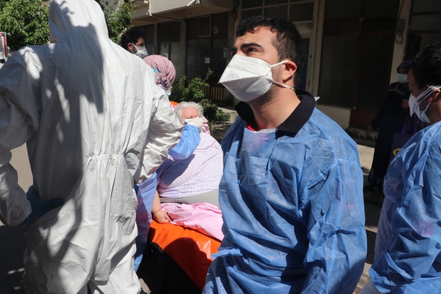 Edinilen bilgiye göre dört katlı binanın üçüncü katında yaşayan 200 kiloluk 78 yaşındaki G.Ş. adlı kadın, yakalandığı korona virüs hastalığının 8. gününde nefes darlığı çekince 112 Acil Yardım ekiplerini arayarak yardım istedi. İhbar üzerine 11 pozitif hastanın olduğu binaya itfaiye, sağlık, polis ve filyasyon ekipleri sevk edildi.