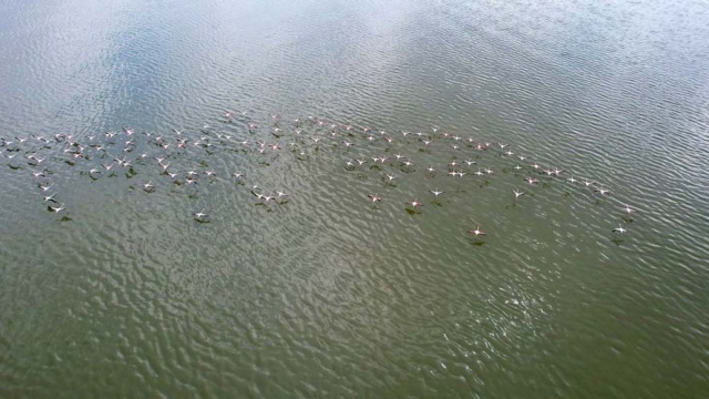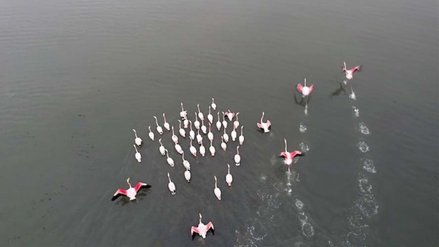 Flamingoların görsel şöleni dron ile görüntülendi.