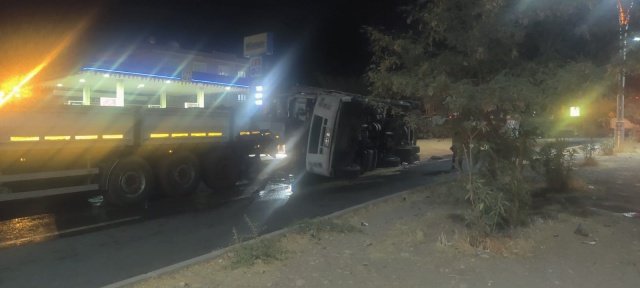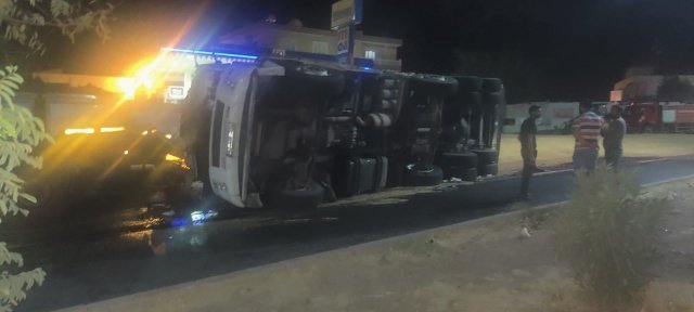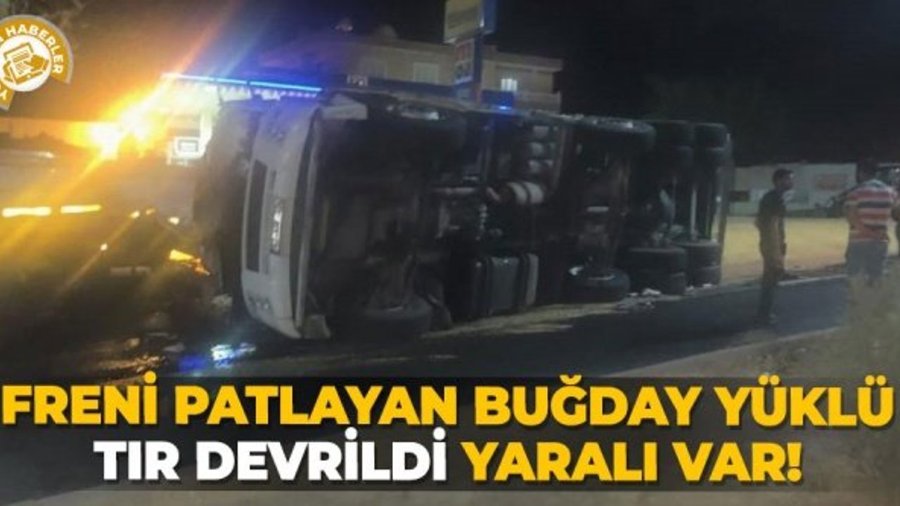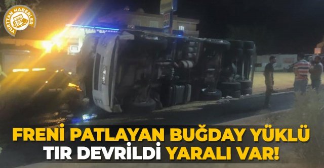 Mardin'de freni patlayan buğday yüklü tırın devrilmesiyle meydana gelen kazada 1 kişi yaralandı.