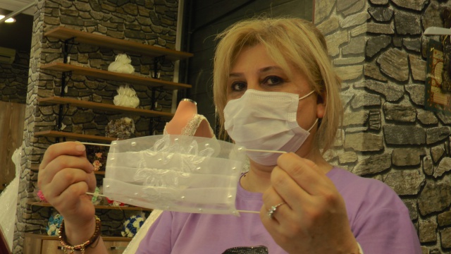 Korona virüs tedbirleri doğrultusunda düğünlerde maske kullanımının zorunlu hale getirilmesiyle gelinler için ortaya birbirinden farklı maske çeşitleri çıktı. Eskişehir’de gelinlikler için maske tasarlayan Serap Çelik ise gelin adaylarının ilk önceliklerinin artık maske olduğunu belirtti.
