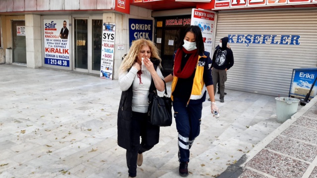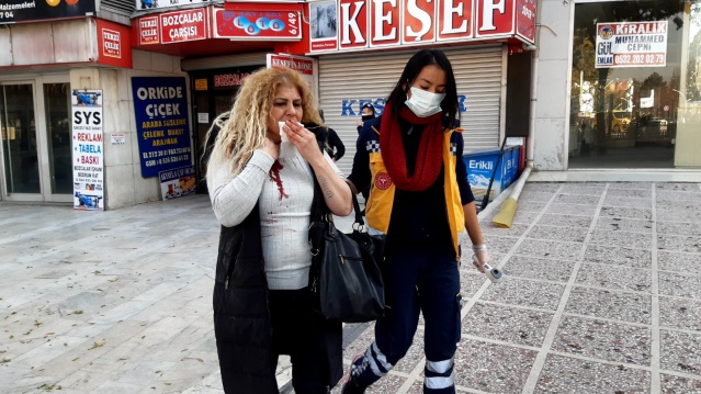 Kadın suratına aldığı makas darbeleri ile yaralandı. Dudağı patlayan ve dişi kırılan kadın kanlar içinde kaldı. Bedriye A.’ya ilk müdahaleyi çevre esnafı yaparken ardından olay yerine polis ve 112 Acil servis ekipleri çağrıldı. İhbar üzerine olay yerine gelen sağlık ekipleri genç kadını ambulans ile Afyonkarahisar Devlet Hastanesine kaldırdı. Burada tedavi altına alınan kadının sağlık durumunun iyi olduğu ve tedavisinin ardından taburcu edildiği bildirildi.