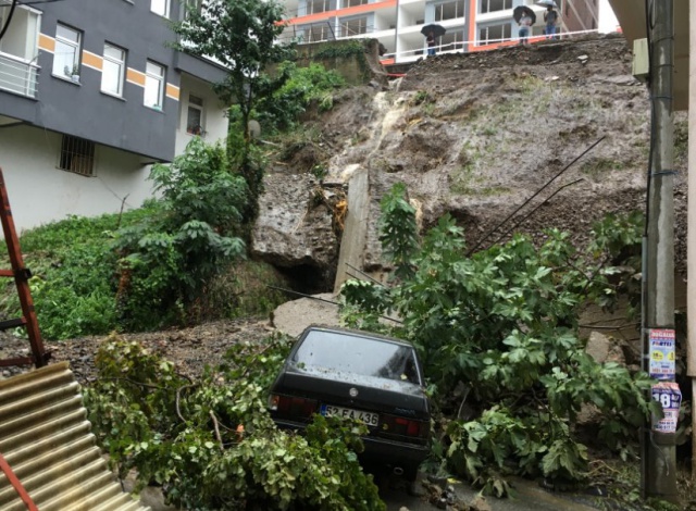 Mahalle sakinlerinden Kahraman Başoğlu, “Duvarın üstündeki kaldırımın alt kısmından yağmur suları akmaya başlayınca herhalde duvarın üst kısmında göl gibi birşey oluştu. Videosunu çekmeye başladığımda bir anda duvarın parçaları aşağı doğru kaymaya başladı. Burada da bir arkadaşın arabası vardı, çökme nedeniyle hasar aldı” şeklinde konuştu.