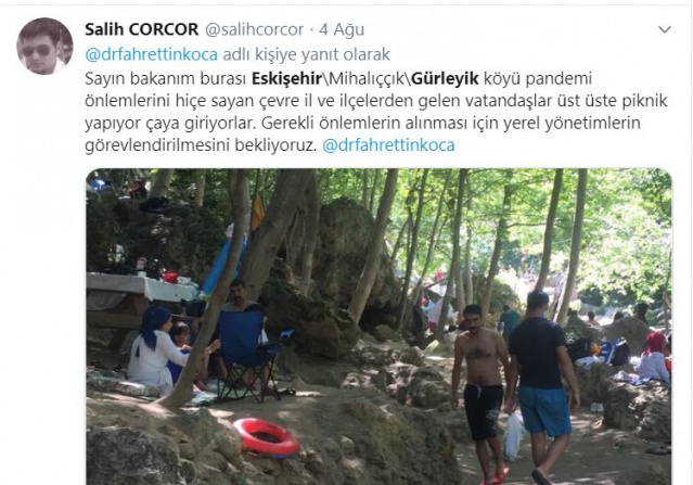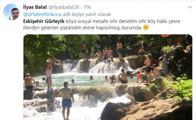 Öte yandan birçok vatandaş, Gürleyik Şelalesi'nden görüntüleri sosyal medyada paylaşıp Sağlık Bakanı Fahrettin Koca'yı da etiketleyerek şikayet etmeye ve yetkilileri göreve ağırmaya başladı.