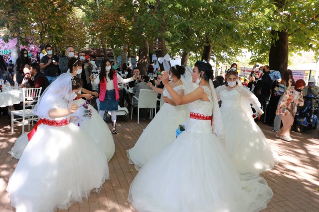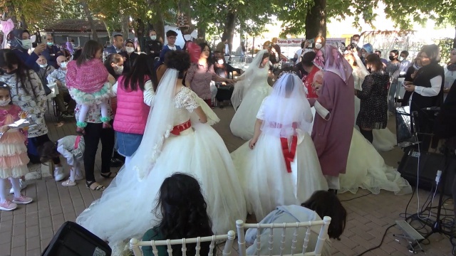 Kırıkkale’de yaşayan ve küçük yaşlardan beri gelin olmanın hayalini kuran 6 engelli genç kıza, Tüm Engelliler ve Engelsiz Yaşam Destekleme Derneği tarafından düğün yapıldı. Her yıl geleneksel olarak gerçekleştirilen 'Engelsiz Yaşam, Doğal Ortam, Birlik Beraberlik ve Kültür Şöleni” etkinliğinde gerçek düğünleri aratmayan bir organizasyon gerçekleştirildi. Bazı engelliler ise polis kıyafeti giyip, coşkulu müzik eşliğinde doyasıyla eğlendi. Kırıkkale Belediye Başkanı Mehmet Saygılı, temsili düğüne katılarak engelli genç kızların mutluluğuna ortak oldu