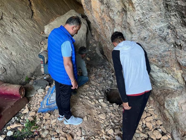 Bir mağarayı kazan definecilerin burada yaşadığını gören vatandaşlar "pes artık" dedi.