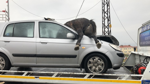 İstanbul’da yol kenarında başıboş gezen 3 at, otomobilin çarpması sonucu telef oldu. Atlardan biri çarpmanın etkisiyle otomobilin ön camından içeri girdi. Araç sürücüsü ise feci kazayı ufak sıyrıklarla atlattı.