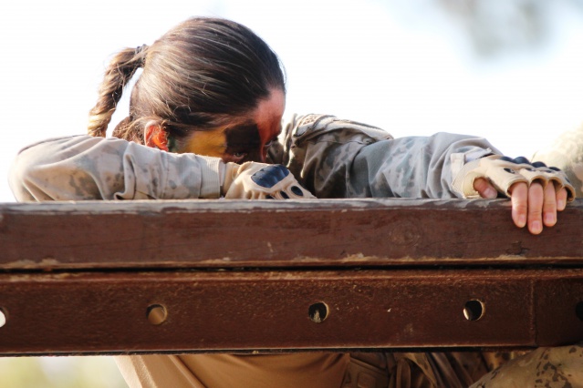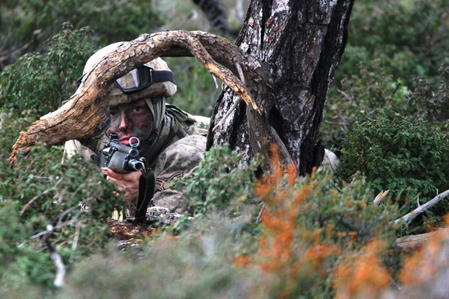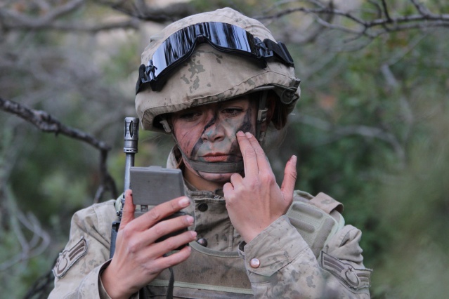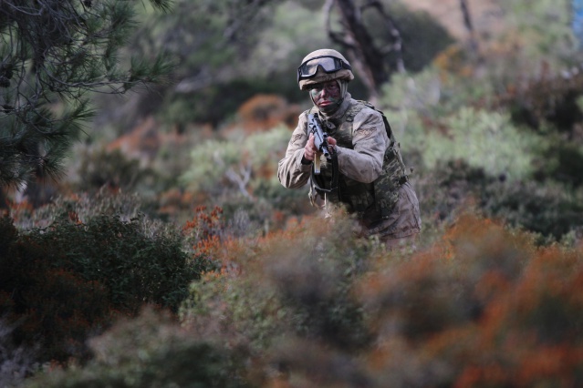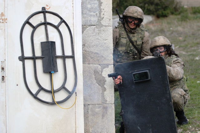 Özel kamuflajlarıyla, düşmana kendilerini göstermeden hedef bölgeye sızma eğitimi alan kadın komandolar, yapılan atışların ardından yine kamufle olarak bölgeden uzaklaşıyor.