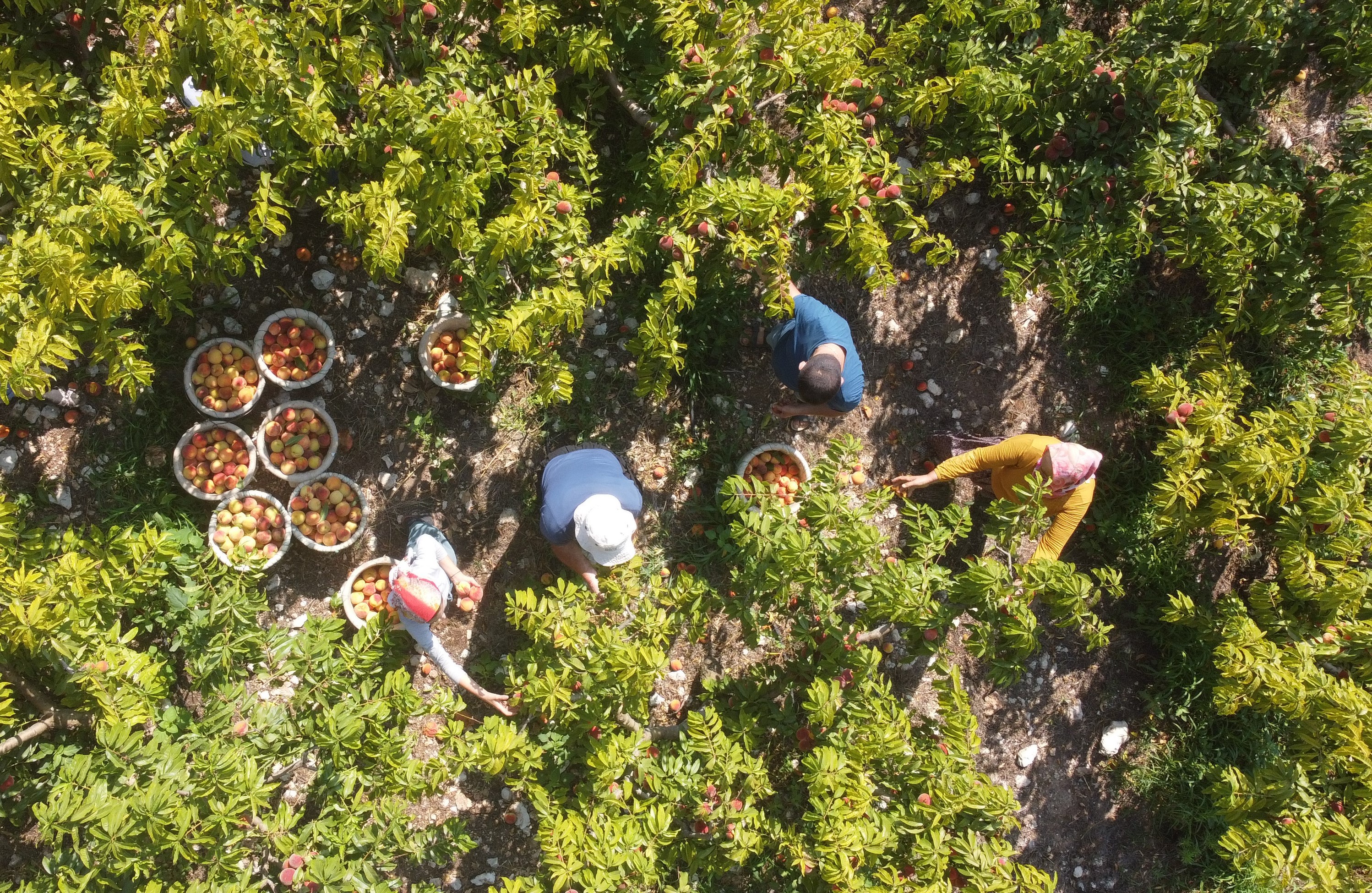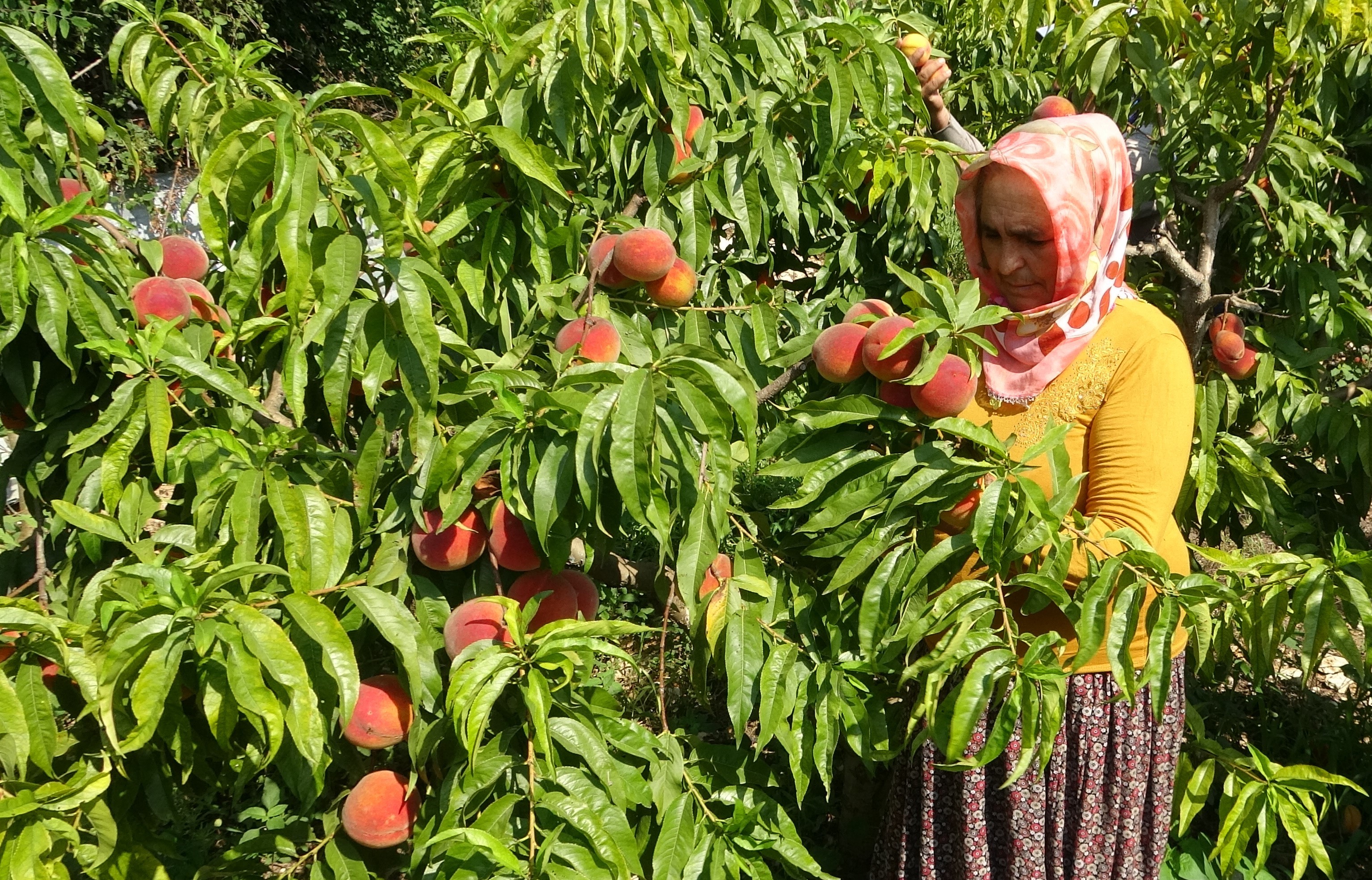 Bahçede şeftali toplayan işçiler de yoğun bir mesai harcadıklarını sabah 5'ten öğleden sonra 3-4'e kadar mesai yaptıklarını aktardı.