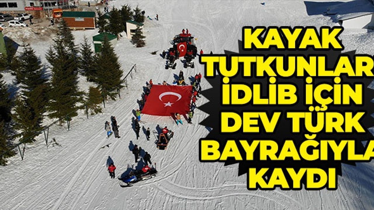 Kocaeli’de de kayak tutkunları şehitleri anmak için pistte dev Türk bayrağı ile kaydı. Kartepe ilçesinde bulunan Samanlı Dağları’ndaki kayak merkezinde Kocaeli Jandarma İl Komutanlığı'na bağlı Jandarma Arama ve Kurtarma (JAK) timleri öncülüğünde bir araya gelen kayak tutkunları, İdlib şehitlerini anmak için dev Türk bayrağını dalgalandırarak kaydılar.
