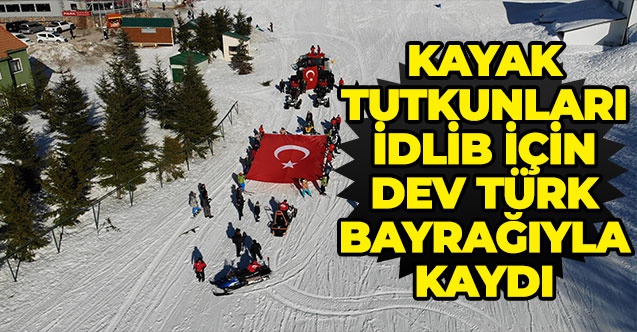 Kocaeli’nin Karatepe ilçesinde bulunan kayak merkezinde kayak tutkunları ve Jandarma Arama ve Kurtarma timleri İdlib şehitlerini anmak için pistte dev Türk bayrağı açarak kaydı.