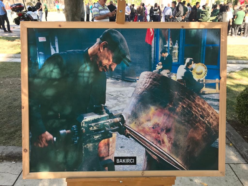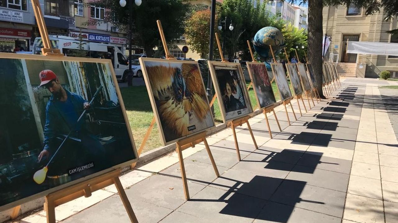 Eskişehir Esnaf ve Sanatkarlar Odaları Birliği’nin düzenlediği sergide faytoncu, bakırcı, sepetçi, derici ve minare ustası gibi Türk kültüründe önemli yeri olan birçok mesleği yerine getiren ustaların fotoğrafları yer aldı.