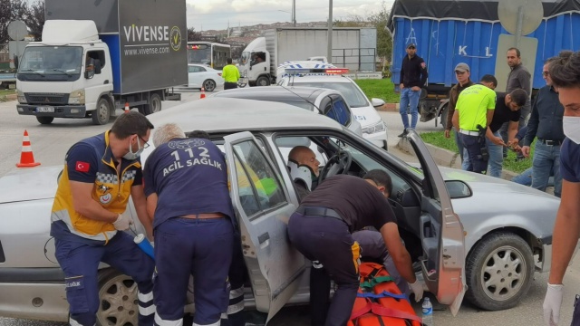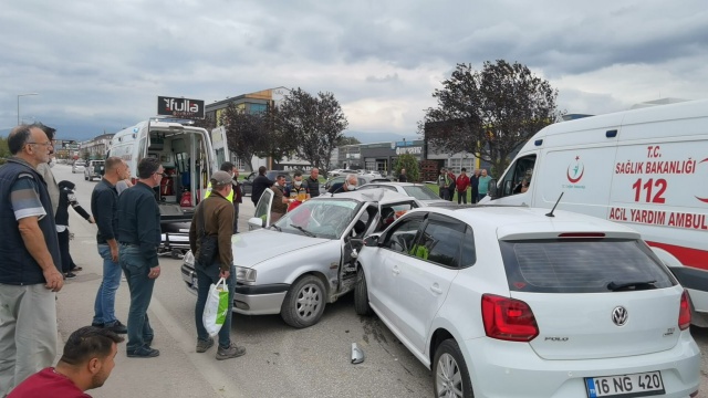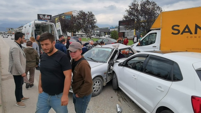Kaza dün saat 17.00 sıralarında Alanyurt yolu üzerinde meydana geldi. Alanyurt'tan İnegöl'e seyir halinde olan sürücü Mahir Acar(23) yönetimindeki 16 NG 420 plakalı otomobil, Metal Sanayiden yola çıkan Davut Eren(69) yönetimindeki 16 JY 015 plakalı otomobil ile çarpıştı.