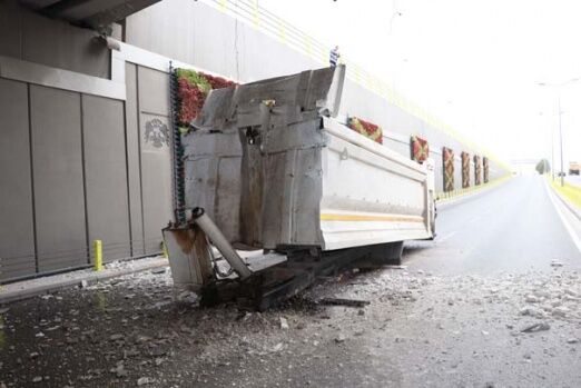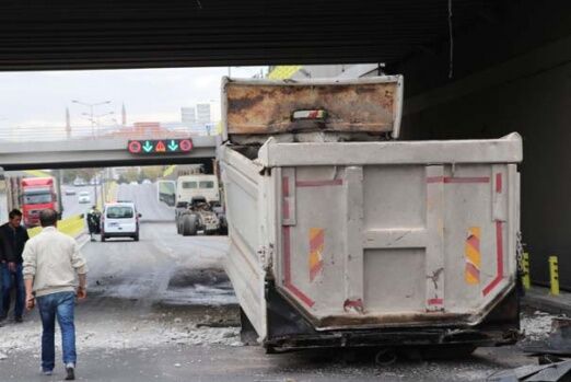 Sürücü açılan dorseyi fark etmemesinin ardından kamyonla alt geçide girdi. Bunun üzerine çarpmanın şiddetiyle kamyonun dorsesi koptu, ağır hasar alan kamyon ise metrelerce sonra durabildi.